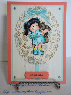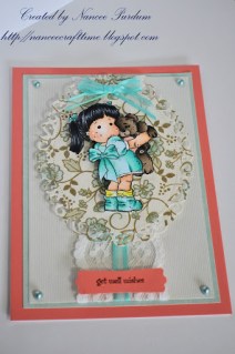 A lovely card Nancee. I love how you did the frame behind Tilda in that nice paper. Lovely colouring.