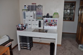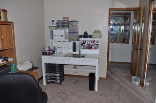My craft room looks so clean now! I just wonder how long it will stay that way…….a few photos of the room. When I grabbed my camera, my helper, Jiffy, decided he didn’t want his photo taken today. He stayed just outside of the room in the hall as he forgot his dog treat! LOL!
