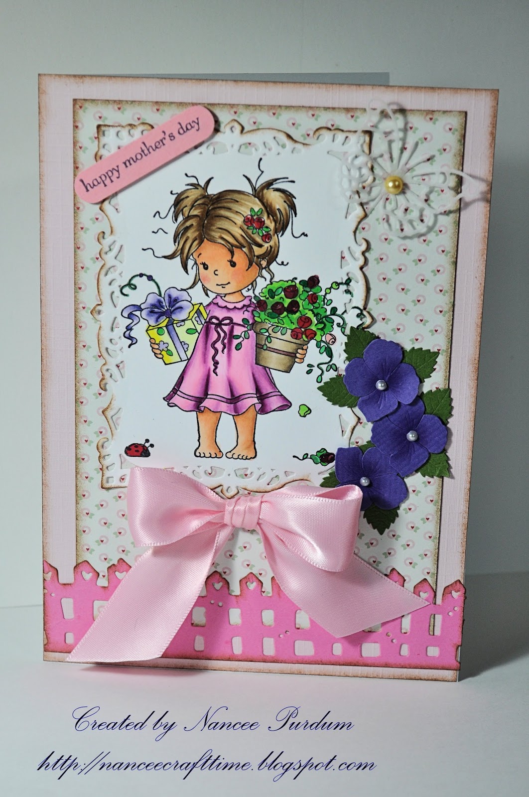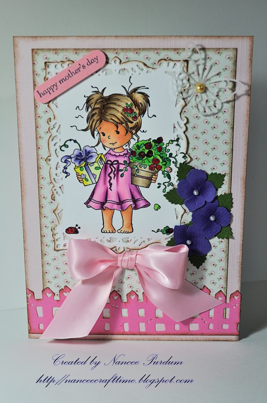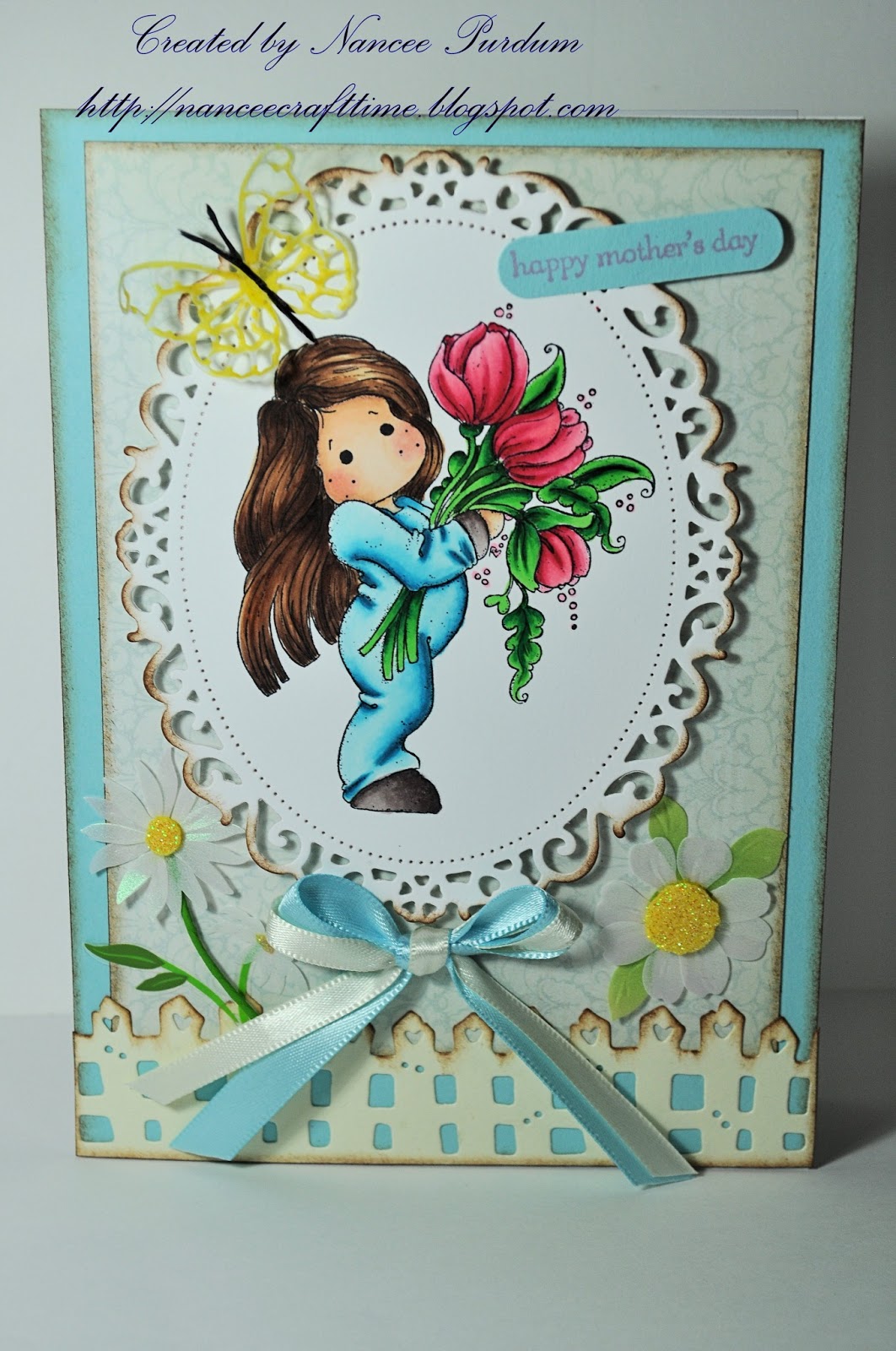 Wow, I can’t believe it has been over a month since I have posted a card! I’ve made some cards, but just got busy and didn’t have time to post any of them….so, here are the cards I made for Mother’s Day. I made one card using a Wee stamp and the other using a Tilda stamp. I’m sorry I didn’t write down the names of either stamp, the paper, or the copics I used. (Sorry! :()