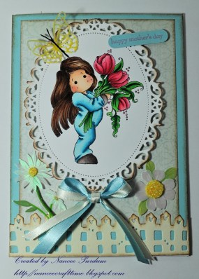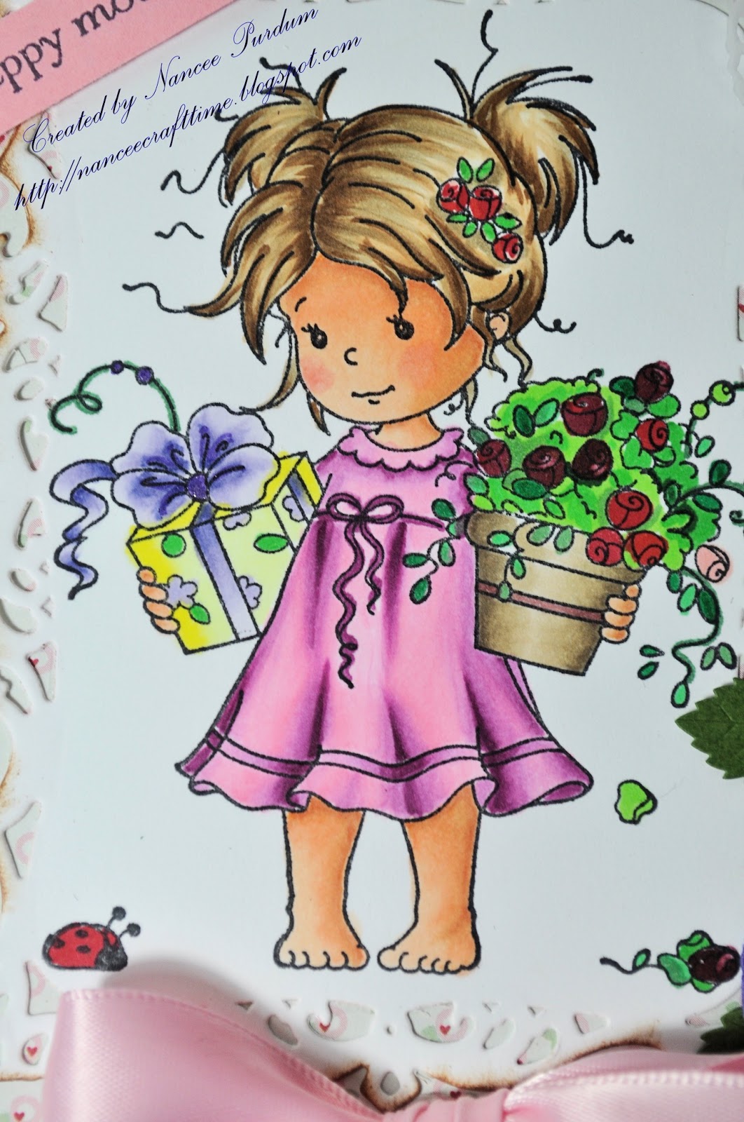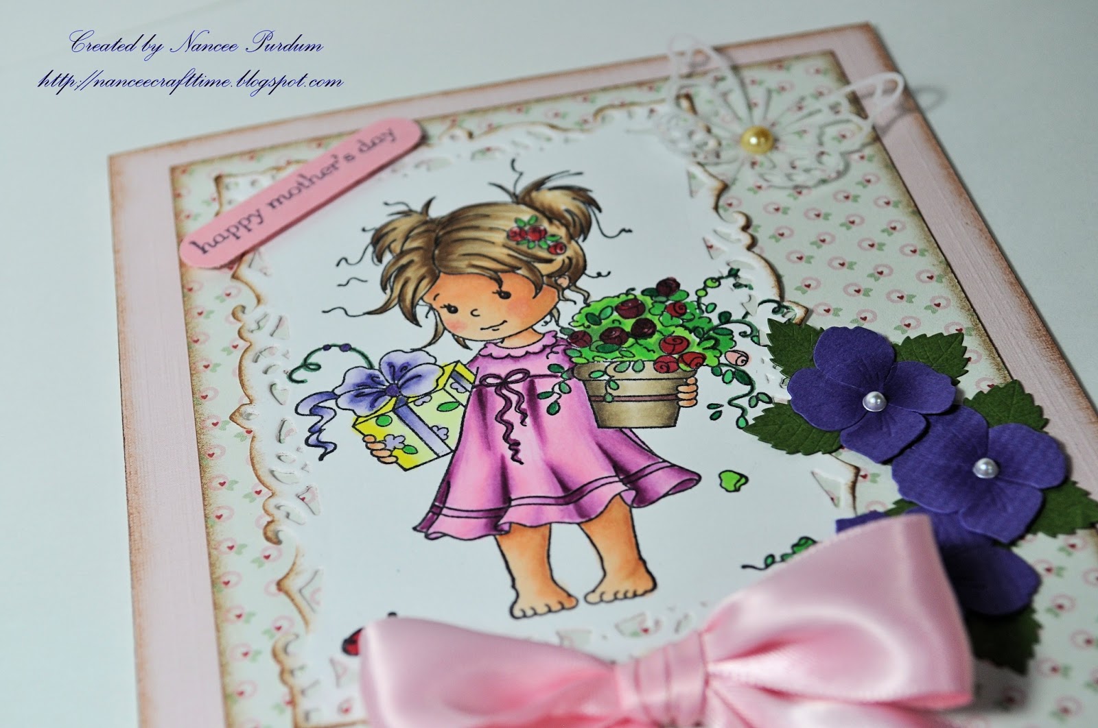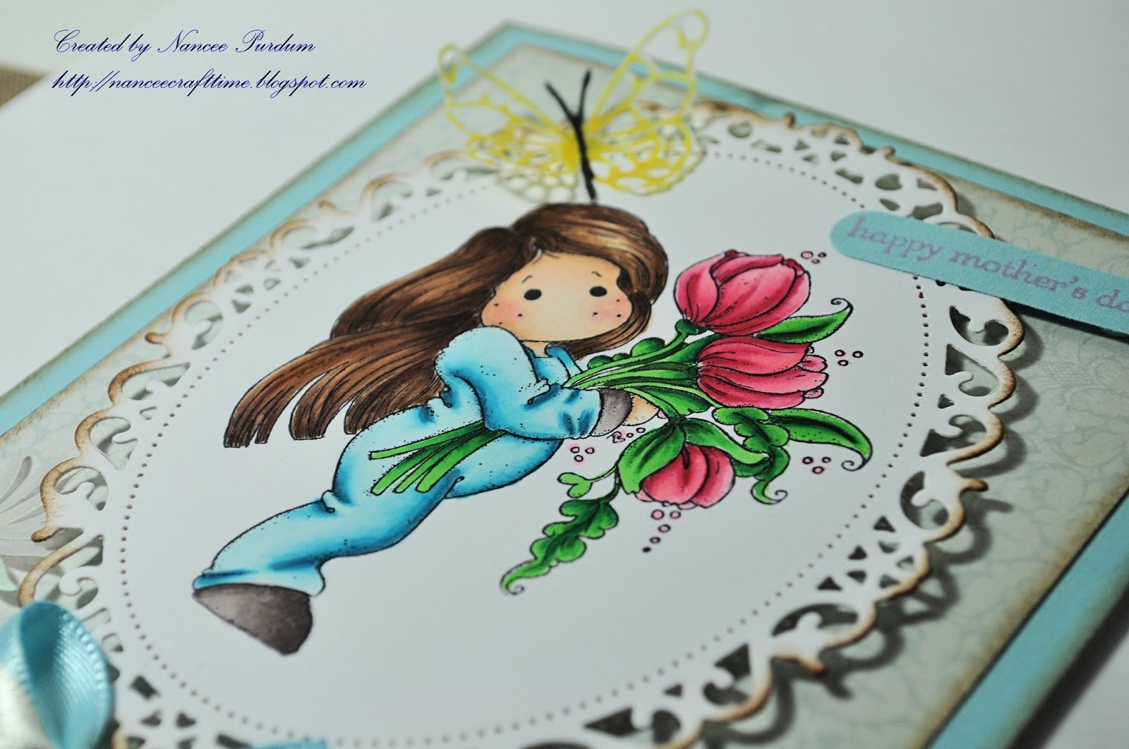 Wow, I can’t believe it has been over a month since I have posted a card! I’ve made some cards, but just got busy and didn’t have time to post any of them….so, here are the cards I made for Mother’s Day. I made one card using a Wee stamp and the other using a Tilda stamp. I’m sorry I didn’t write down the names of either stamp, the paper, or the copics I used. (Sorry! :()