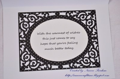I used watercolor paper to stamp my images.  I stamped the image with Ranger Archival Jet Black ink.  The ribbon is from Stampin Up.  I used Spellbinders dies to surround the verse on the inside. The verse was computer generated.