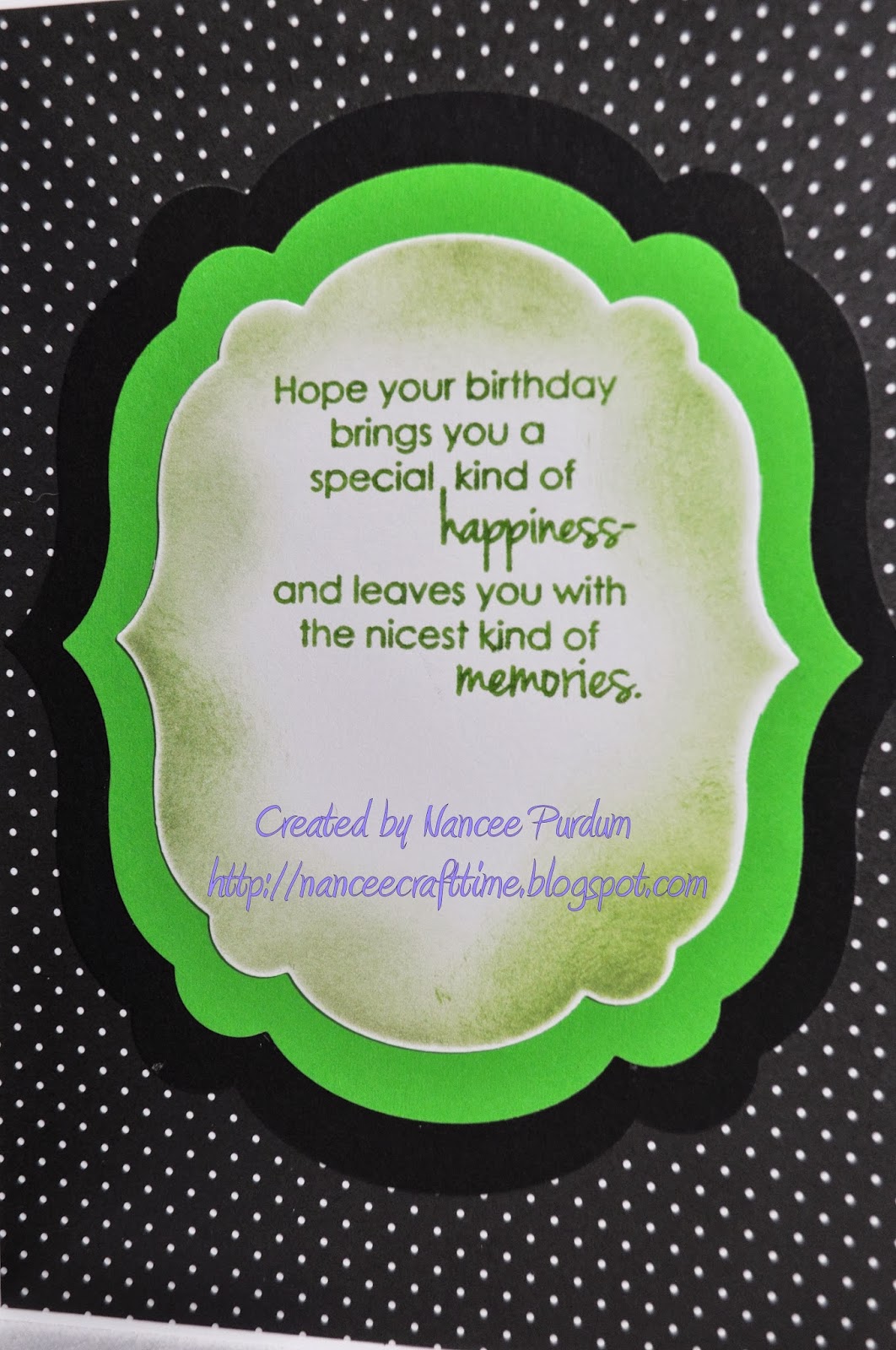 I cut Edwin out and popped him up with dimensionals. I purchased the Bow-it-All from Scor-Pal and love it! It is really easy to use, and the bows are so pretty! My sentiment is from Gina K – Birthday Greetings. My Washi tape is from Downtown Tape. I also decorated the inside of the card with another greeting from the same stamp set and used Stampin Up’s Framelets – Labels Collection.