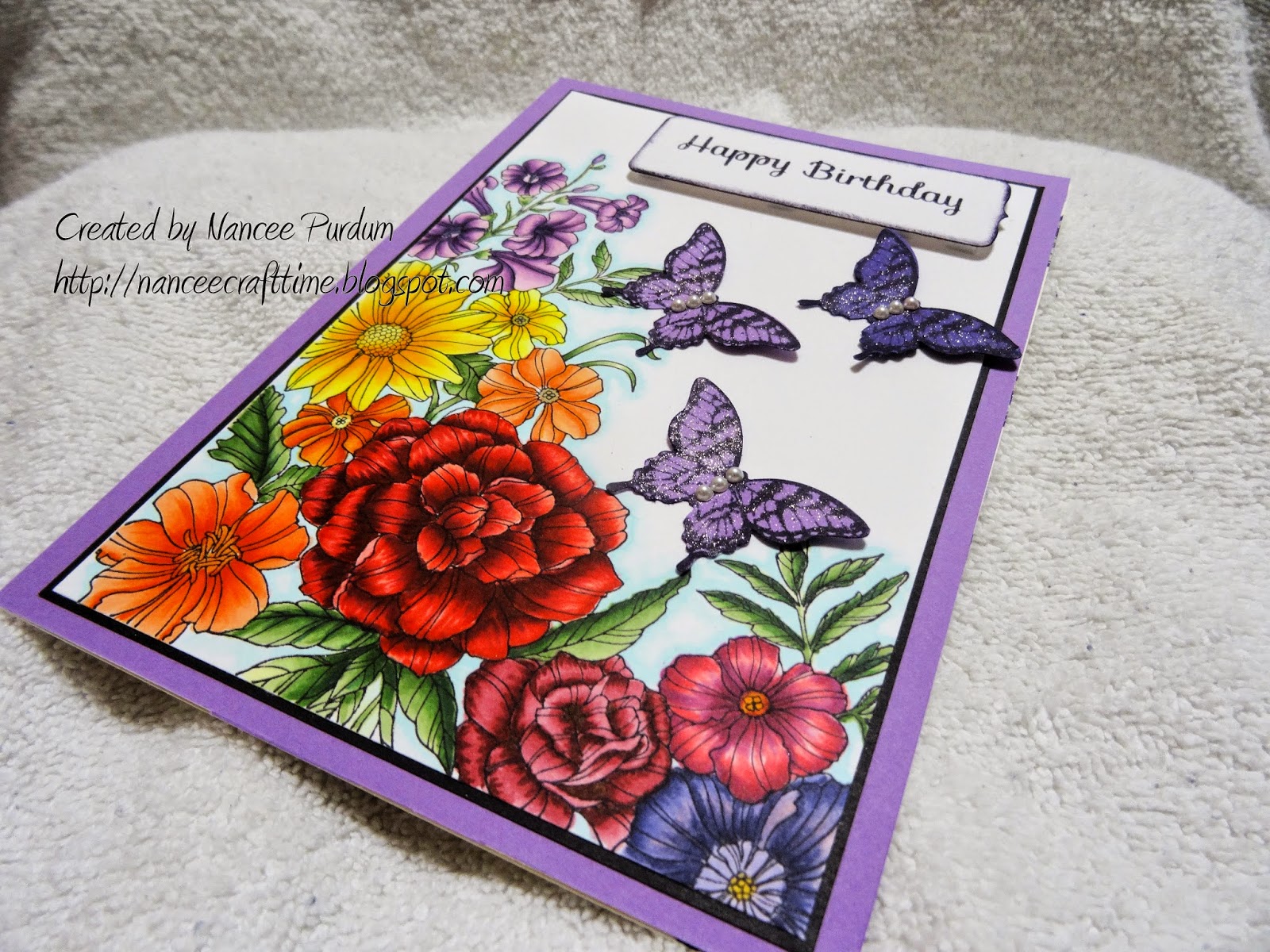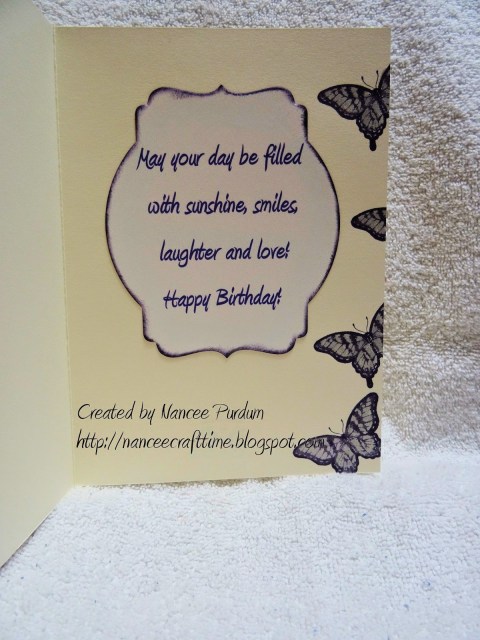 I added some butterflies, also Stampin Up, to add some dimension to the flowery scene. I added some pearls to the middle of the butterflies to “dress” them up.