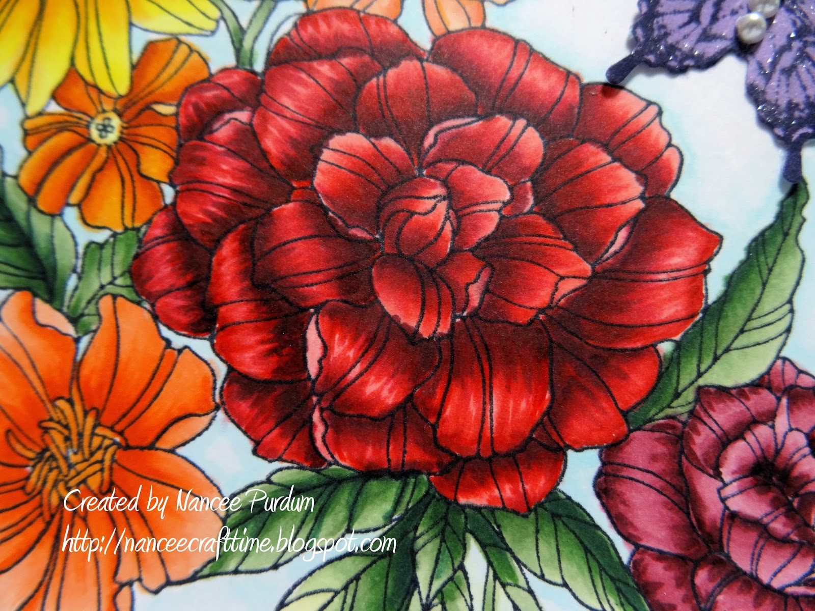 The flowers were colored with my Copic markers. I will list them at the bottom in my supply list.