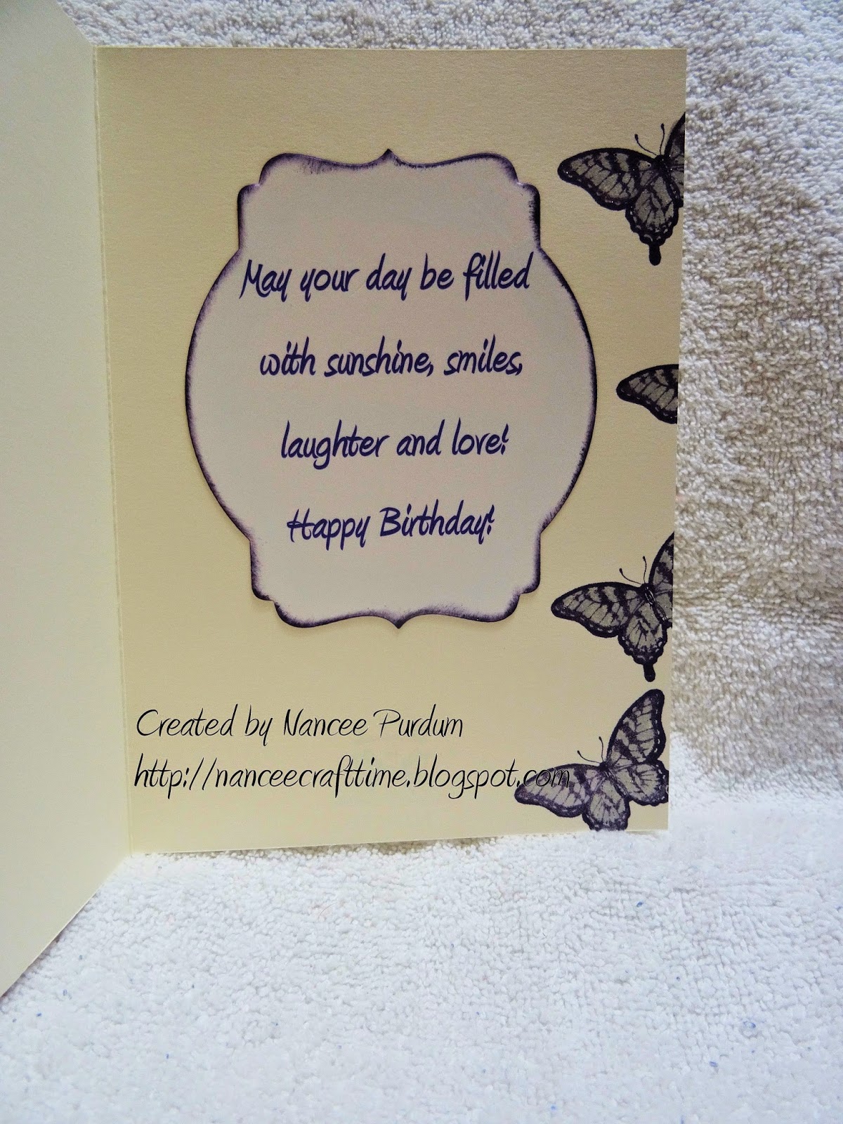 Stamps – Bordering Blooms (Stampin Up), Papillion Potpourri (Stampin Up); Birthday Messages (Simon Says Stamp)
