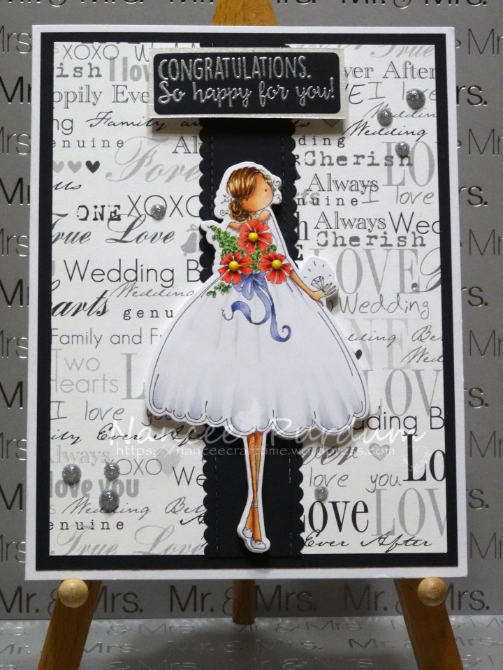 My niece has another wedding to go to, so I needed to make another wedding card. I used another Stamping Bella stamp, Uptown Girl Melanie the Modern Bride. I colored the image using my Copic markers and have listed the colors I used at the bottom of this post. I had some “wedding” paper and […]