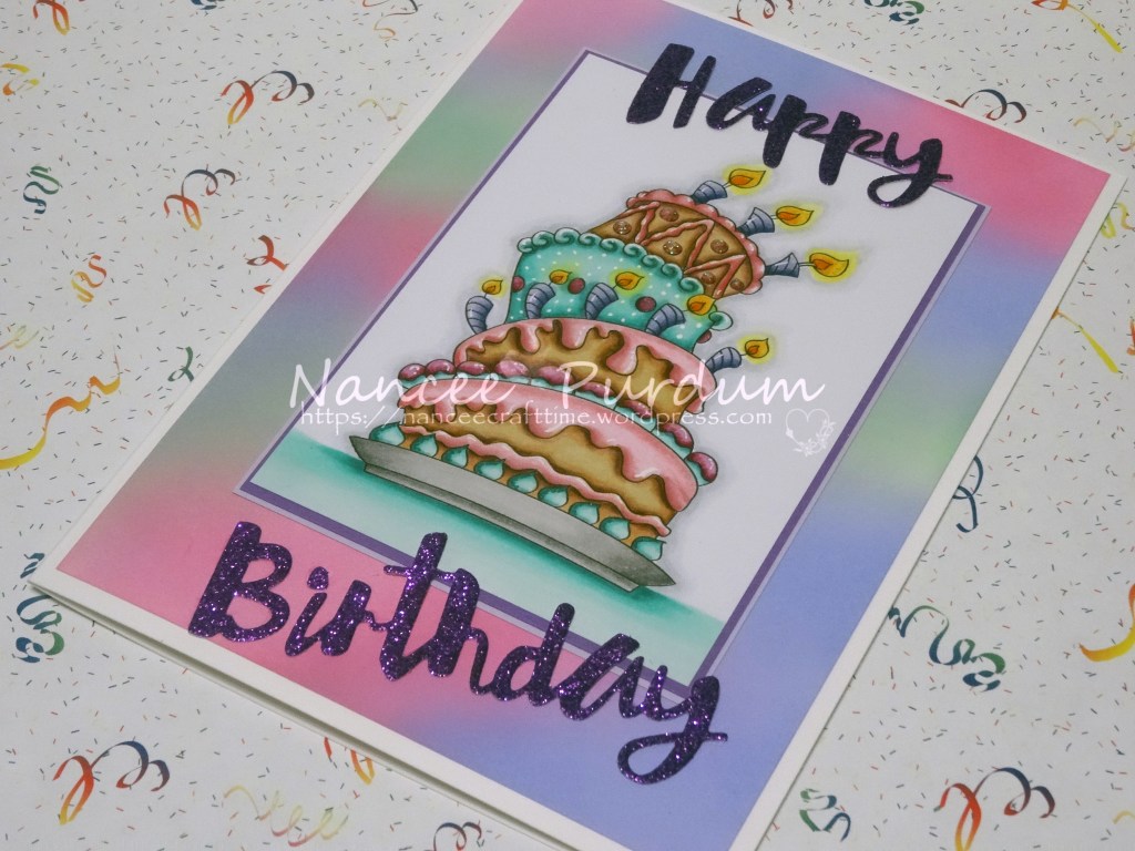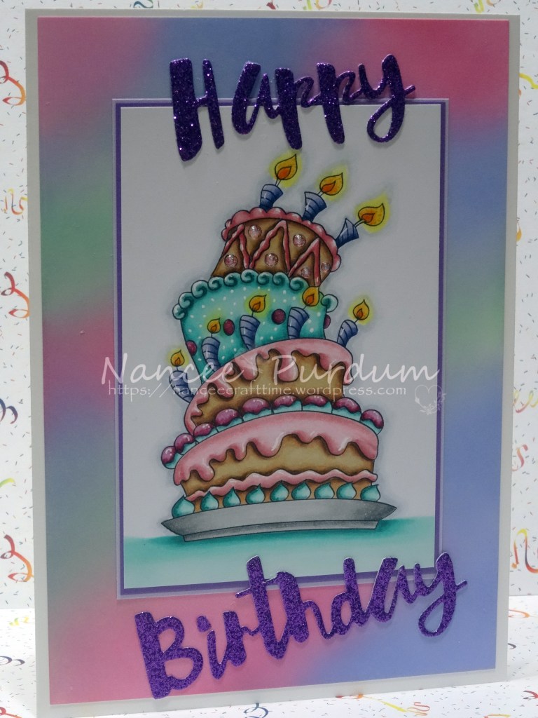 I had some glitter card stock scraps so I used a die from Simon Says Stamp, Happy Birthday,