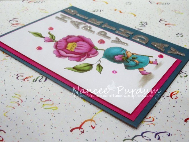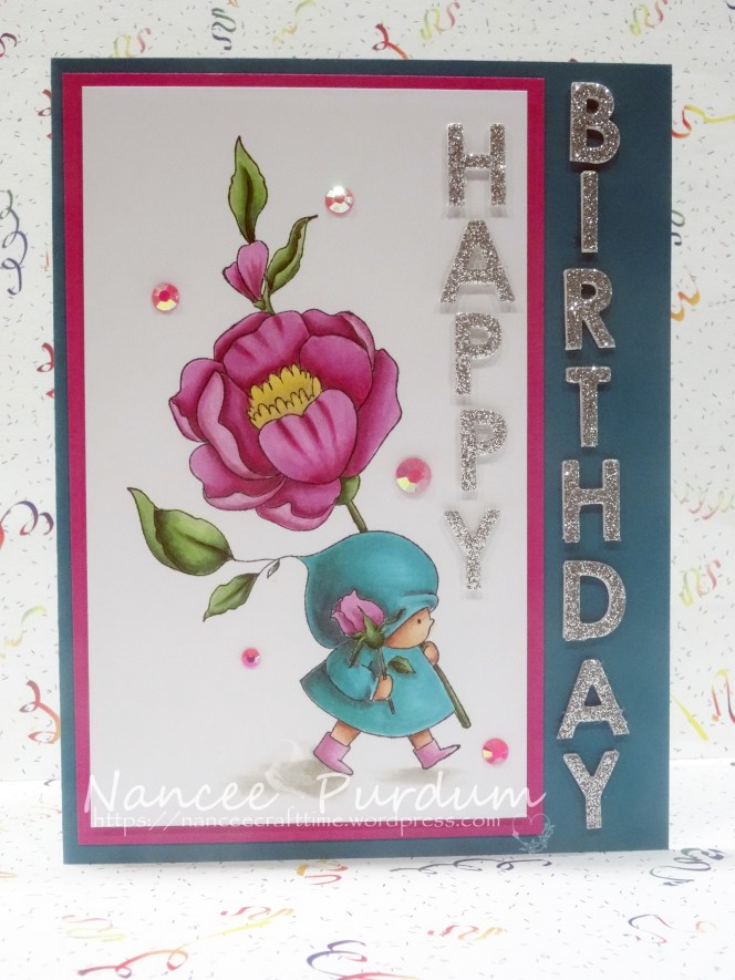 Birthdays just keep coming! Today’s card is using Stamping Bella‘s Bundle Girl with a Rose. Isn’t she just a cutie??