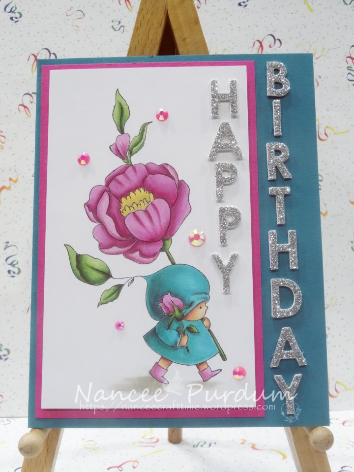Birthdays just keep coming! Today’s card is using Stamping Bella‘s Bundle Girl with a Rose. Isn’t she just a cutie??