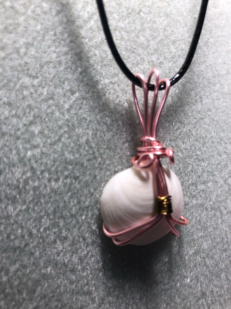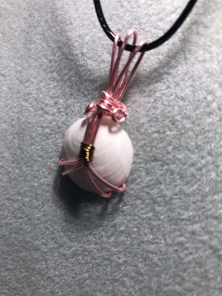 A little more practice with making jewelry tonight. I’m still just practicing with craft wire and learning. I have a lot of shells to play around with.