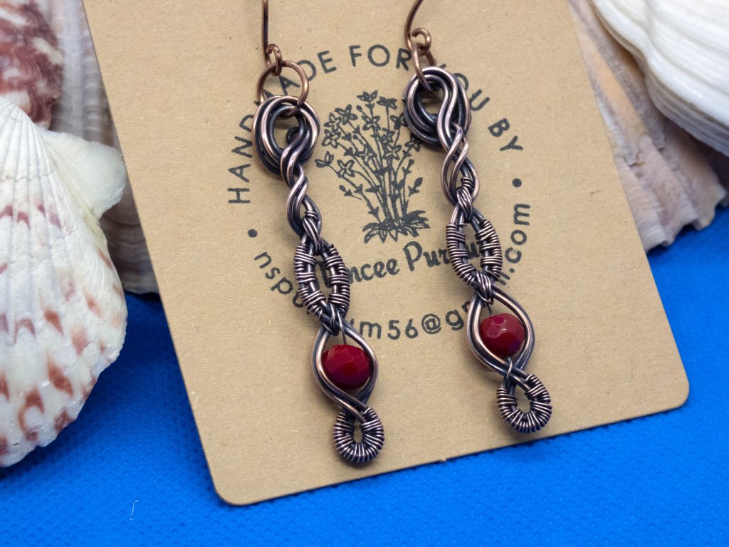In September, I started exploring handmade wire jewelry. I watched so many YouTube videos and wanted to learn more. I have several people I follow as they have excellent tutorials. The more I watched, the more I wanted to do. For Christmas, I made some of my family jewelry items for Christmas. I have been practicing since September and finally feel that I am able to offer more items for sale. I have opened a store on my Facebook page, Handmade by Nancee. We shall see how that goes. I have the same items listed on my blog under the “Crafty Items for Sale”.
