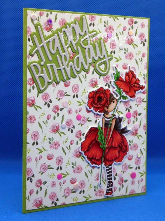 I have another birthday card to share today. Once again, I have used an image from Stamping Bella, Tiny Towne Garden Girl Poppy.