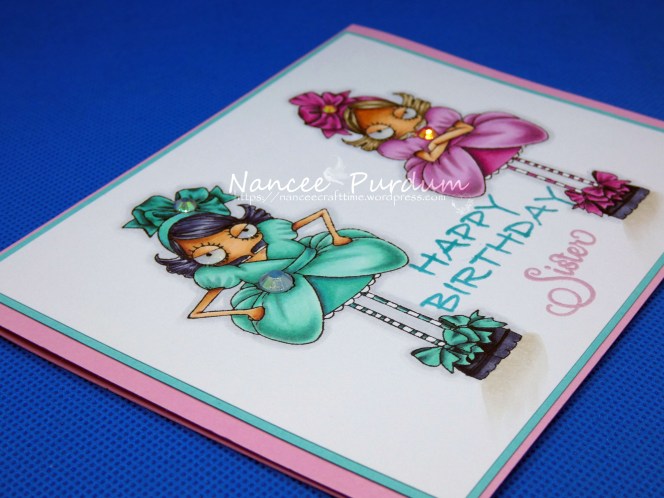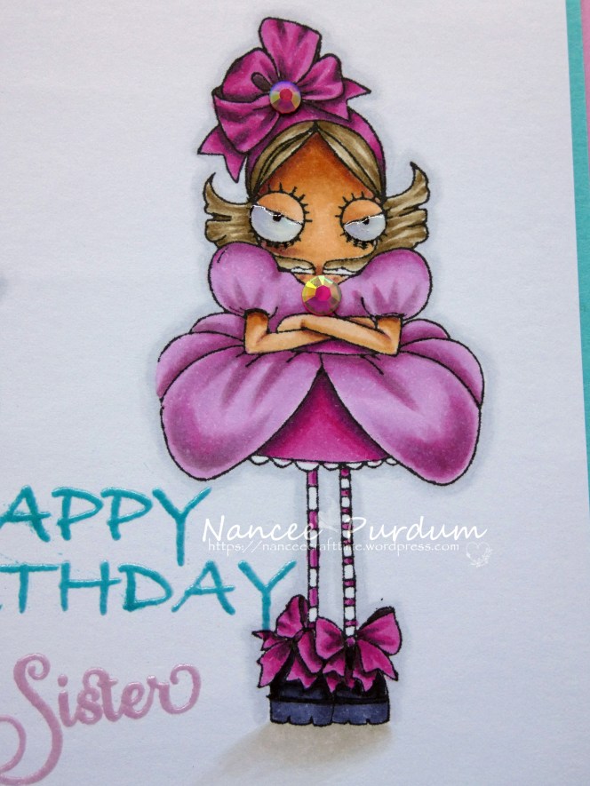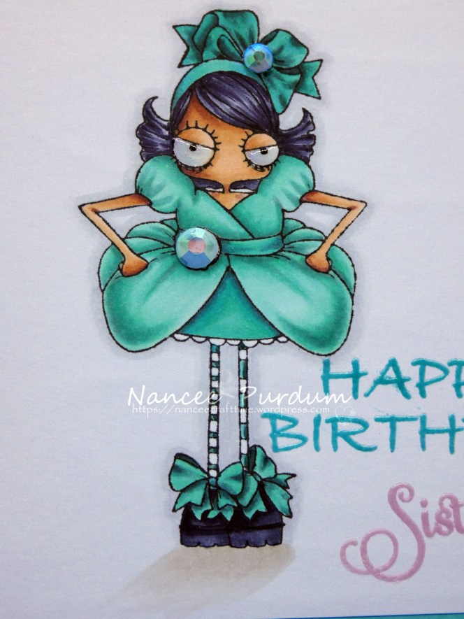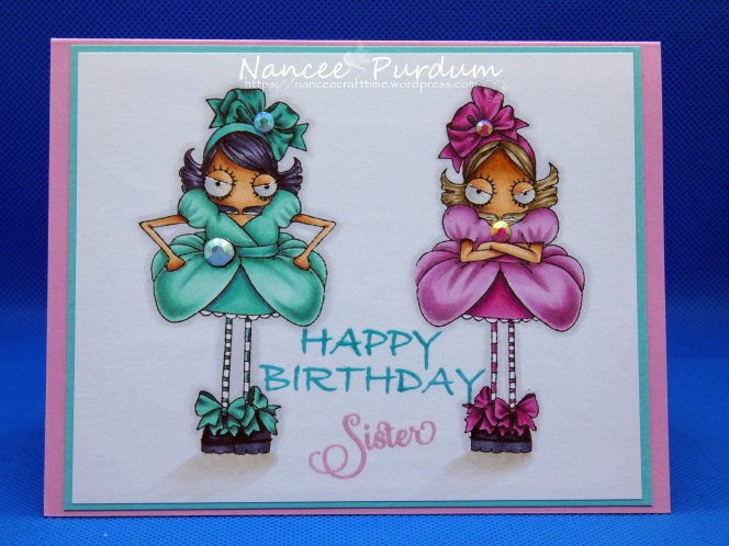 Another of my sisters has a birthday today and I wanted to make a fun card for her. I bought this image, Oddball Step-Sisters, from Stamping Bella as I thought I would get some use out of it.