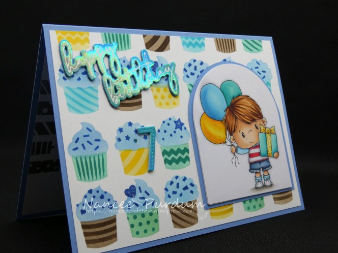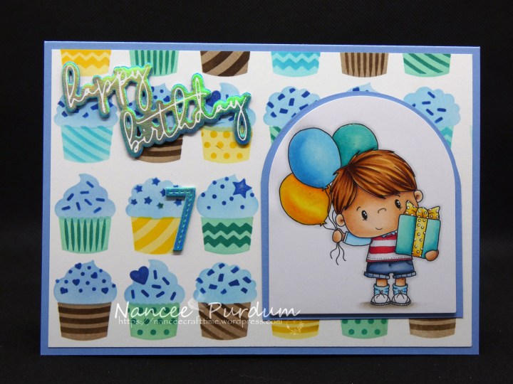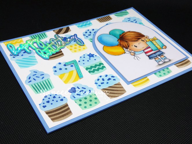 My grandson recently celebrated his 7th birthday. I can’t believe he is seven already! I choose this adorable image, Grant from Whimsy Stamps. It is a digital stamp which is great as you can resize it to fit your card.