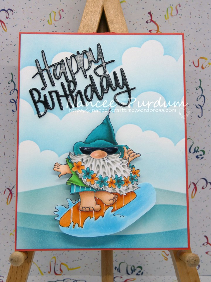 I have another Gnome card to share today. Gnome with a Surfboard is another Stamping Bella image. After coloring the image with my Copic markers, I used an older die set that I had to cut out the image and a border for the image. The sentiment is from Simon Says Stamp, Happy Birthday One […]