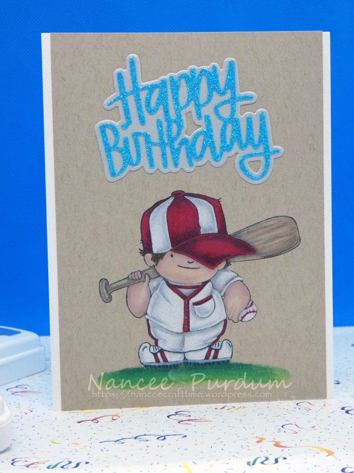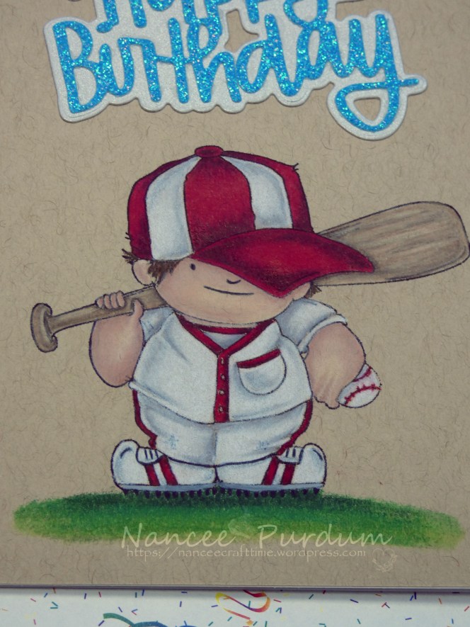 I am so far behind in posting some of my cards. I made this card for by Grandson’s birthday back in June. The image is Baseball Squidgy from Stamping Bella.