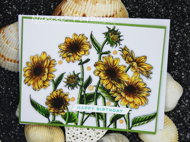 I colored the image using my copic markers. This is such a large image that it covers the front of an A2 card. I have listed the copics I used at the bottom of my post.