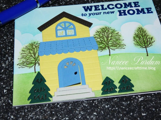 My sentiment is from Simon Says Stamp, Home Sweet Home and stamped in Royal ink also from Simon Says Stamp and heat embossed with clear embossing powder.