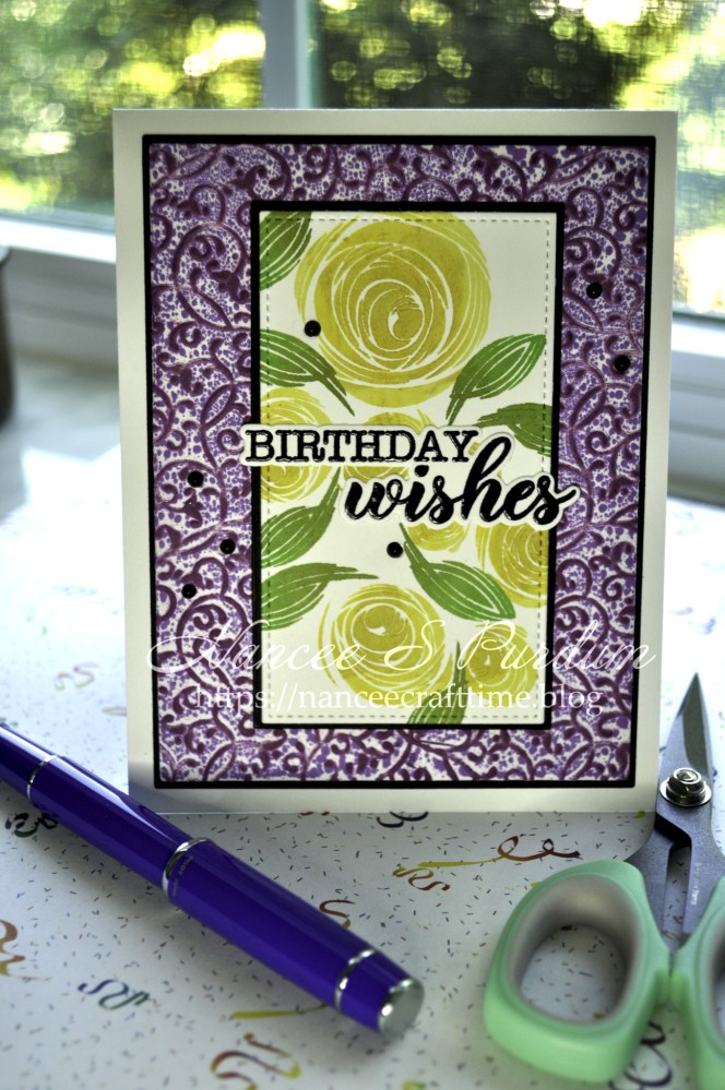 Gina K inks: Black Onyx, Fresh Asparagus, Jelly Bean Green, Lemon Drop, Lovely Lavender, Lucky Clover, Plum Punch, Prickly Pear, Wild Dandelion, Wild Lilac