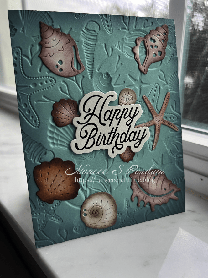 - To keep with my ocean theme, I die cut some shells from some white cardstock with the intension of adding some ink to the outer edges of each shell.