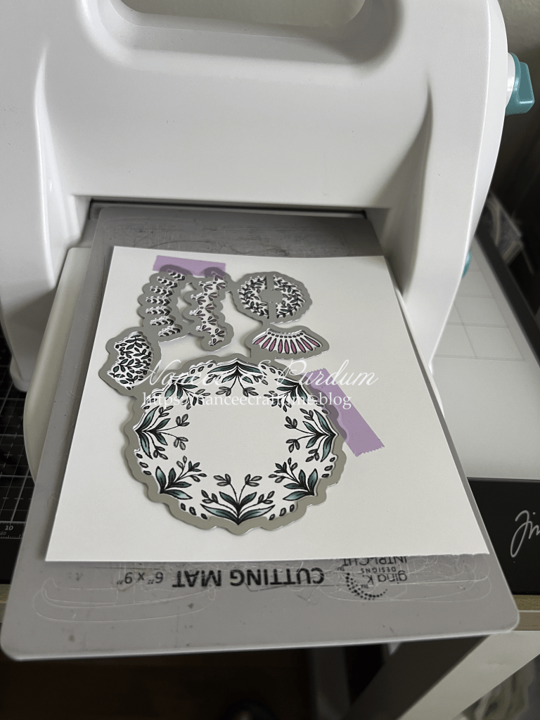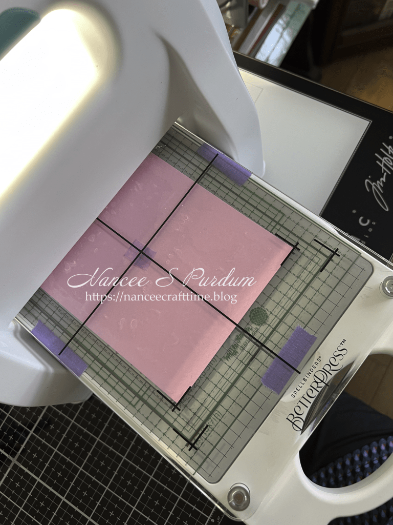 - I then ran the platform through my die cutting machine which leaves an impression and ink on my cardstock.