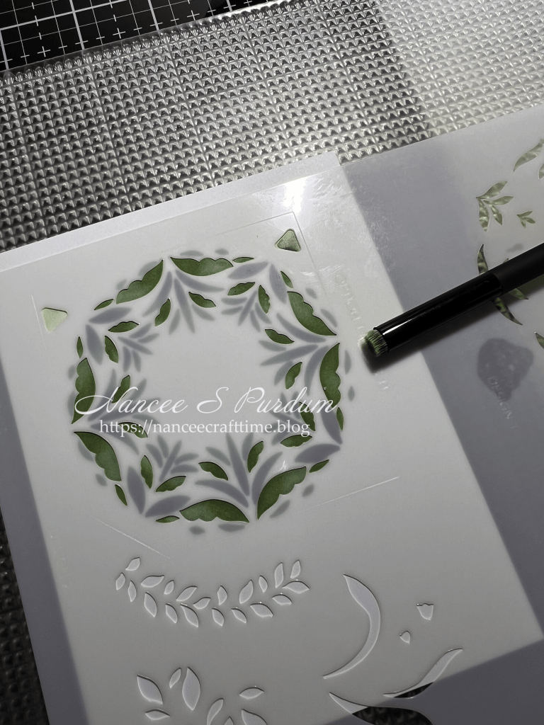 - To apply to color to the images, I used the matching layering stencils. I started with my lightest color with the first stencil. I also added a little slightly darker ink with the same stencil to add some more detail.