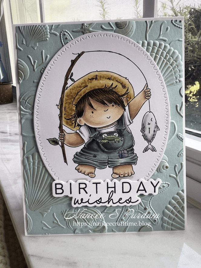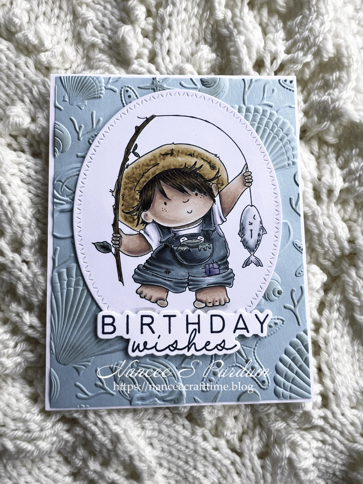 I had choosen to use Fishing Squidgy as my focal image from Stamping Bella. I don’t think this image is still available now.