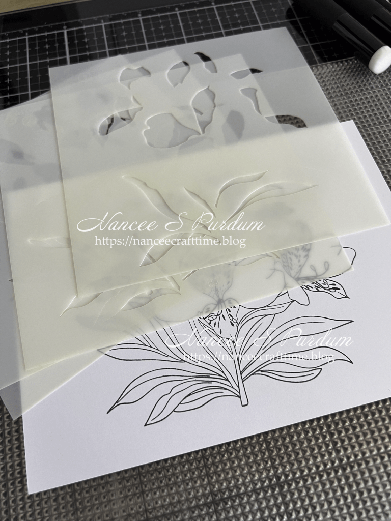 - After inking up the stencils the first time, I then decided to add some shading to the flowers.