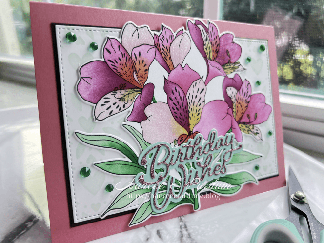 Today’s card uses a new stamp, die and stencil set from Altenew. I love how they offer different items for one image. You don’t have to purchase all three. You can use the stencil and stamp by themselves or with the die. Today, I decided to use all three.
