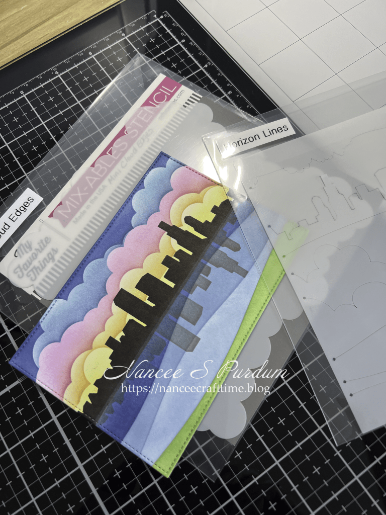 Simon Says Stamp: Horizon Lines stencil, Clouds for Days stencil