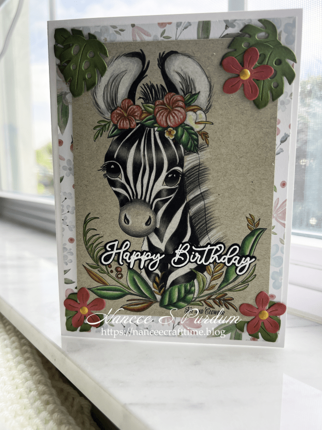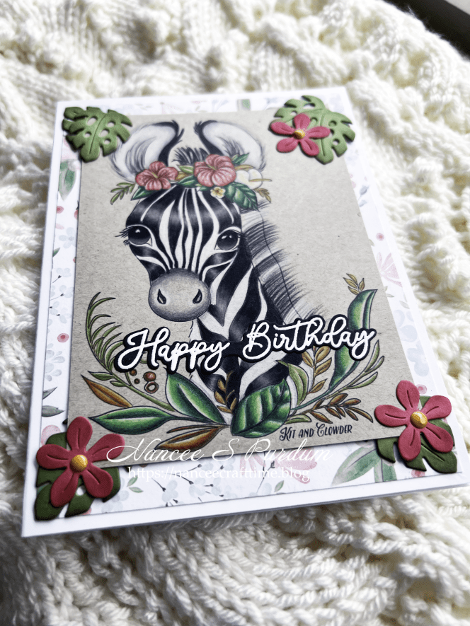 I have another card to share with an image I colored based on a class I took from Kit and Clowder. The class was coloring on cloth, but I decided to color it on some kraft cardstock.