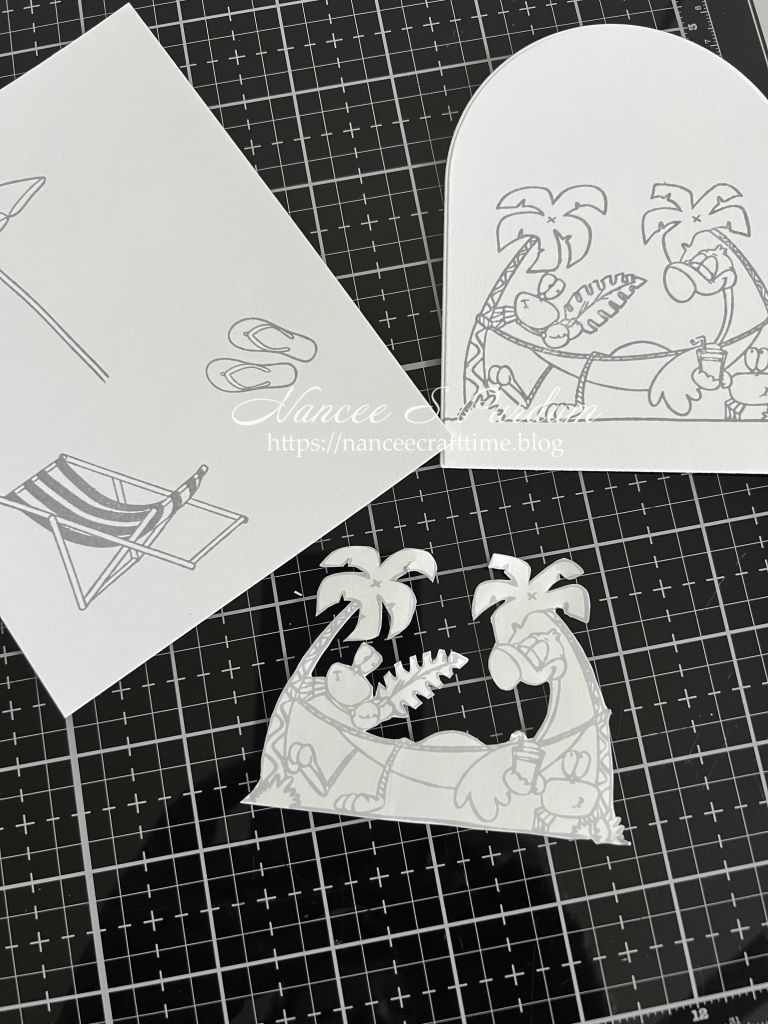 - I then stamped my focal image on some Masking Magic paper and then fussy cut it out.