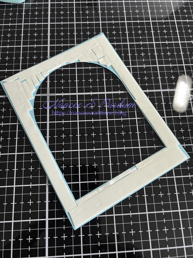 - I used the same two dies that I used to cut down my white panel and the one I used to create the opening in my blue panel.