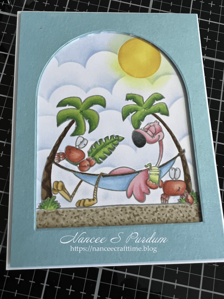 - Once I had my image colored, I then added some Copic marker to the sand to give it more of an appearance of sand.