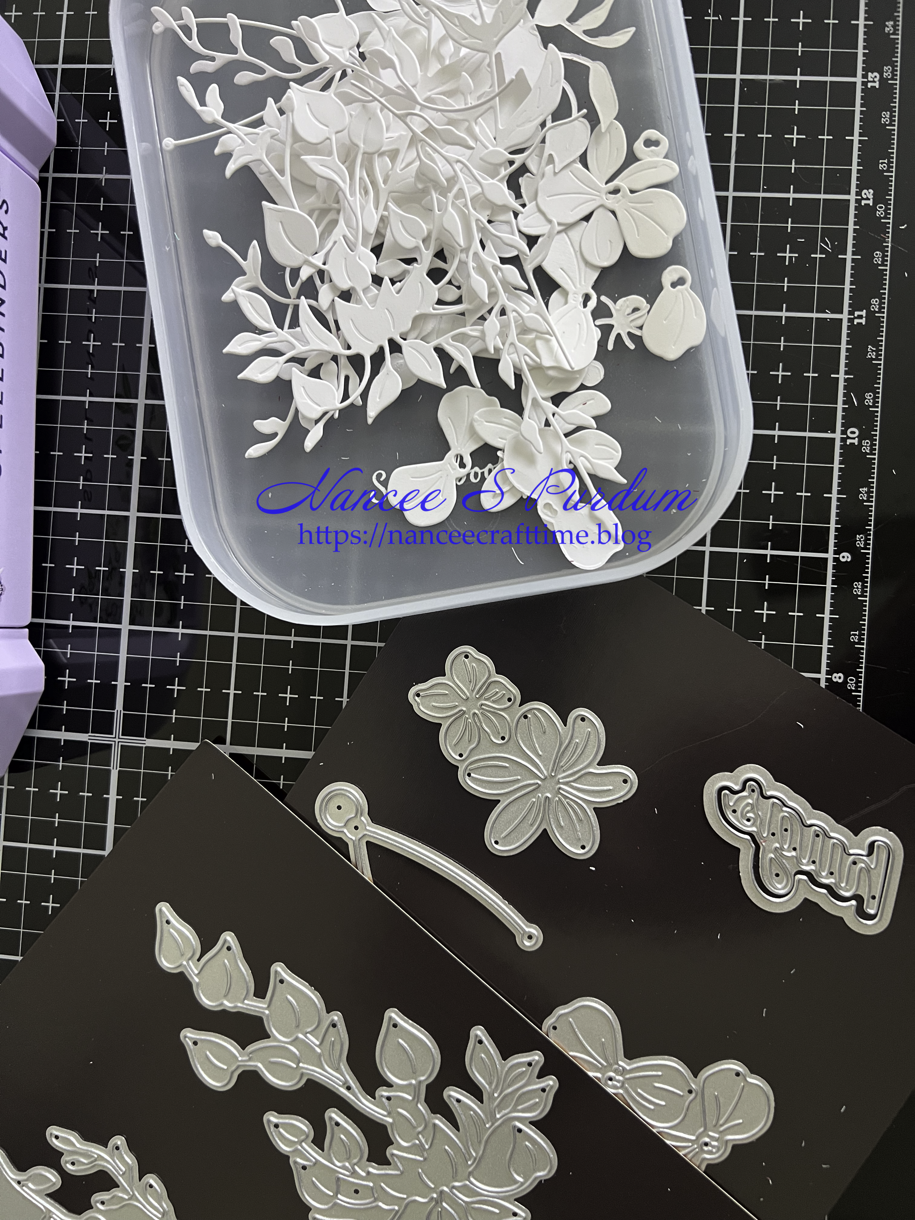 - After choosing the pattern paper, I started die cutting all of the pieces from some white cardstock.
