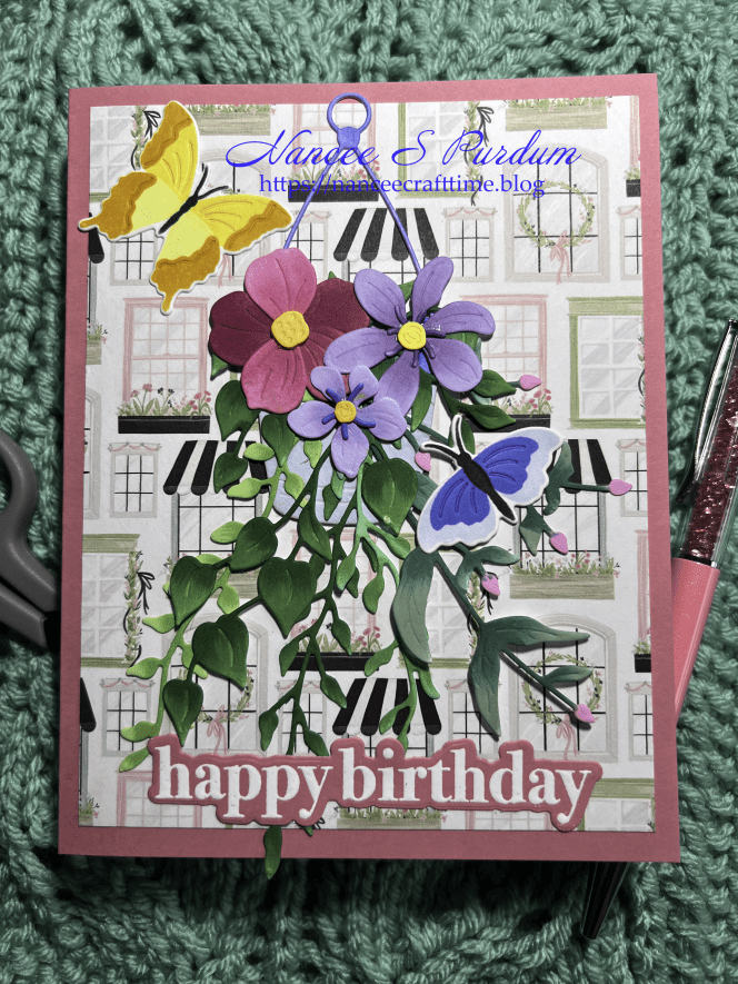 - Once I had them how I wanted them, I added the entire hanging basket to my card.