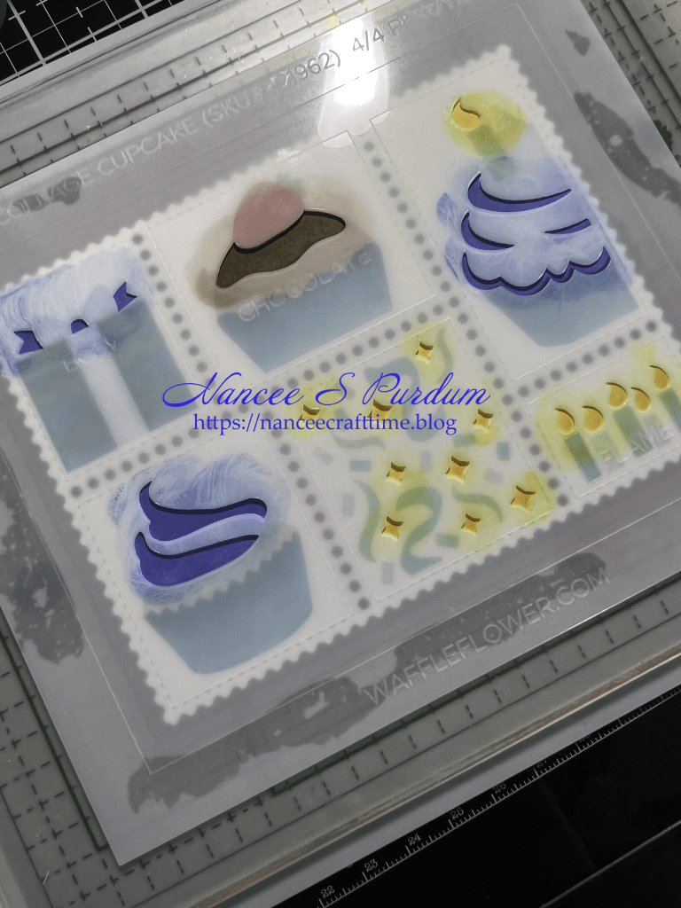 - I used the Postage Collage Cupcake laying stencils to color the images.