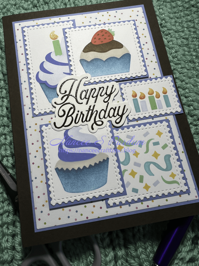 I added some Nuvo Aqua Shimmer Glitter to the candle flames to give them a little sparkle. This completed my card.