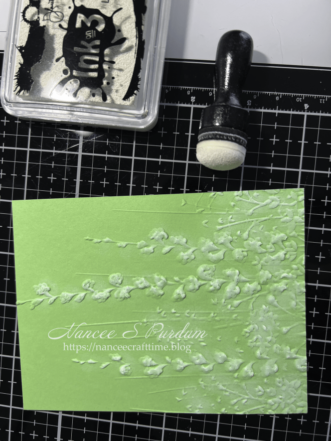 - Once I removed the paper from the embossing folder, I used an ink blending tool to add some white ink over the raised portions.