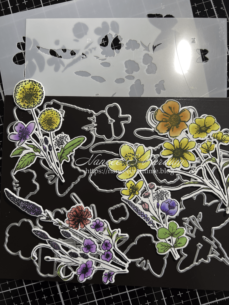 Simon Says Stamp: Butterfly Blossoms (stamp, stencil, die), Garden Spires embossing folder