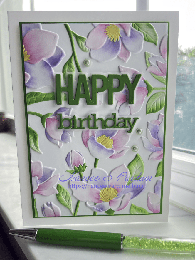To finish off my card, I added some light green pearls to the panel. This finished my card.