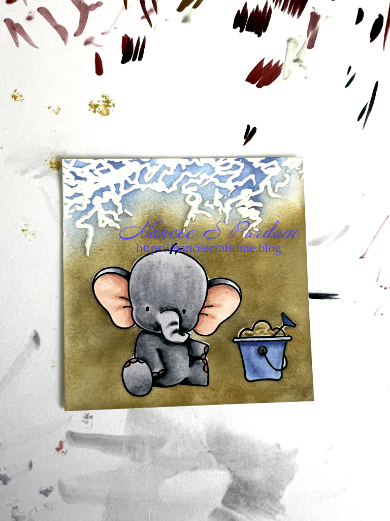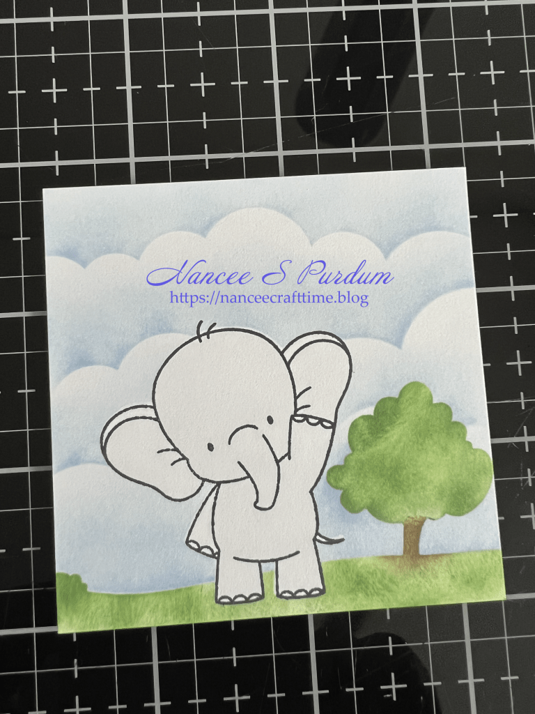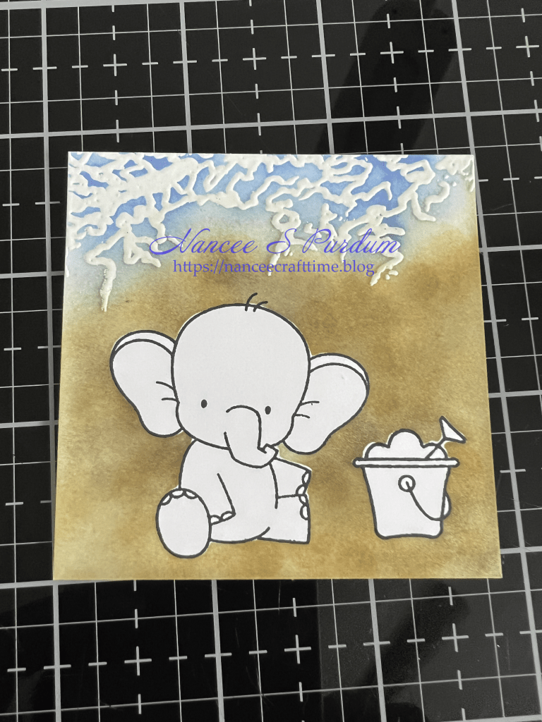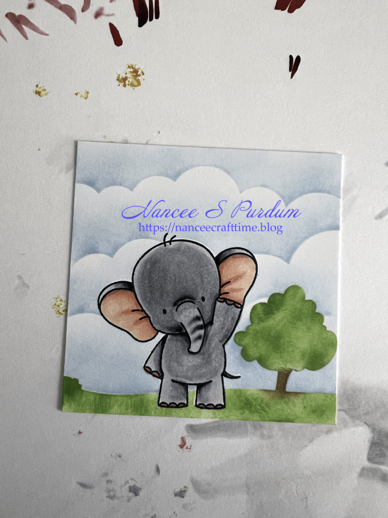 My Favorite Things: BB Adorable Elephants stamp set (retired); Mini Cloud Edges stencil (retired but similar items are available)