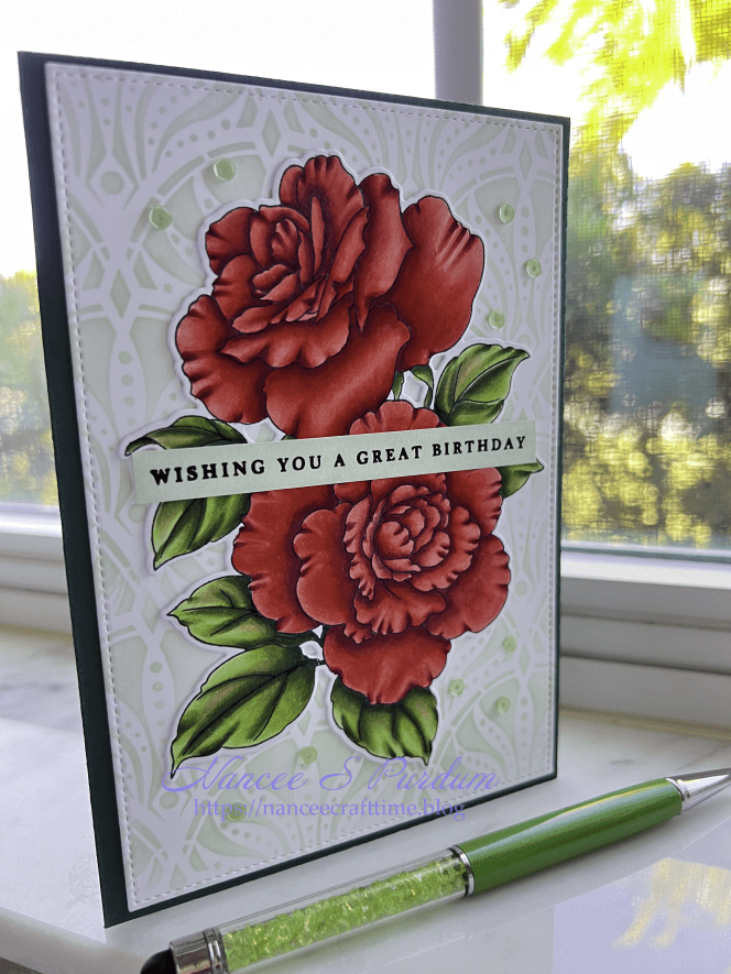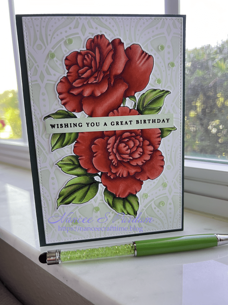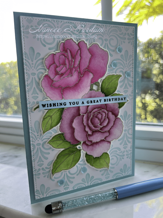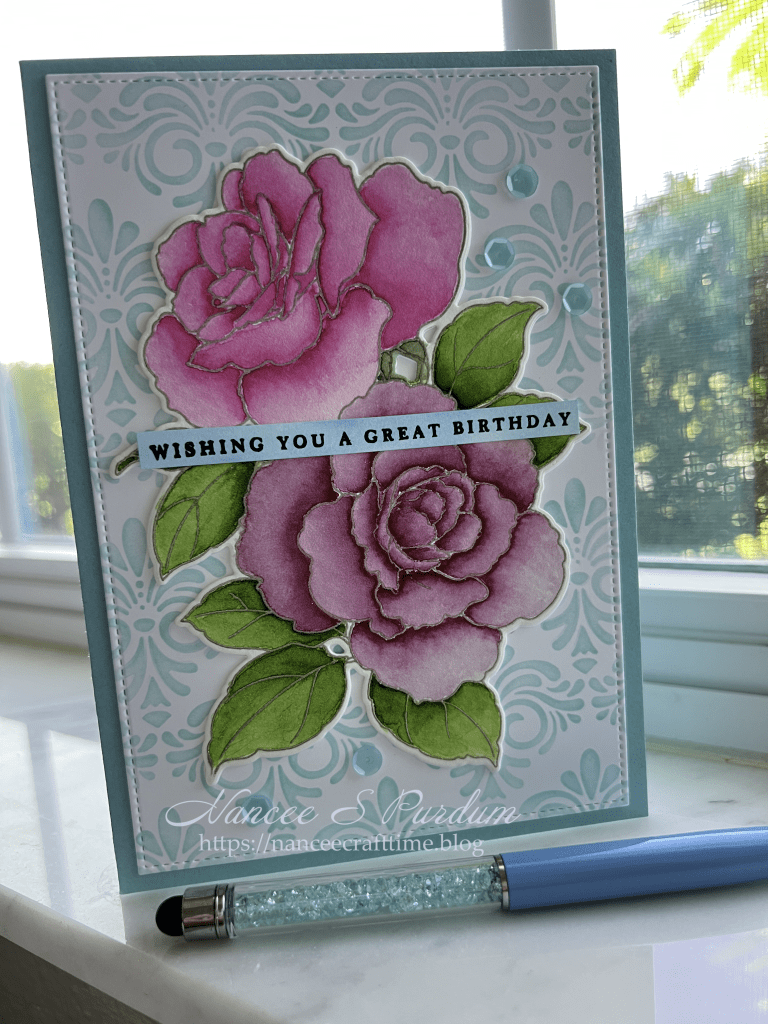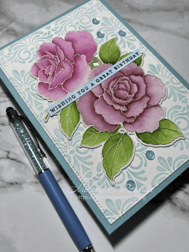 Today’s cards are made using Altenew’s Rose Reverie Stamp and die set. There is a stencil set that goes along with the stamp and die set, but I didn’t use it today.