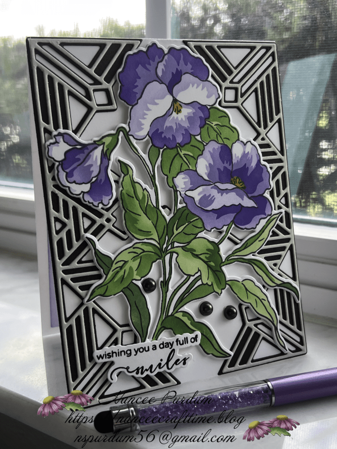 Today’s card uses Altenew’s new Fanciful Pansies collection. This was the monthly subscription for August 2025. I combined the collection with an older die set that I have.